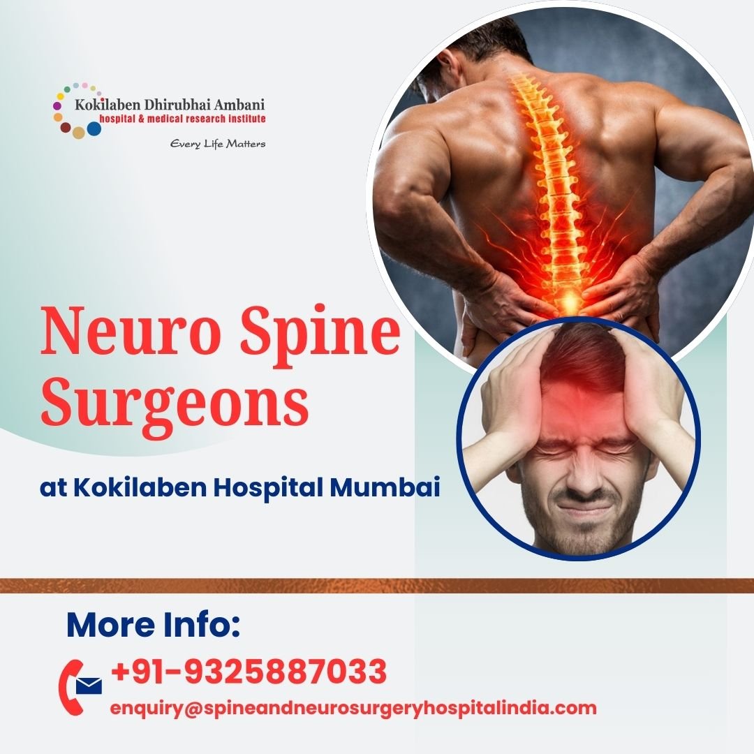 Leading Neuro Spine Surgeons at Kokilaben Hospital Mumbai provide comprehensive diagnosis and advanced treatment for complex brain and spine disorders. The Best Spine Doctors in Kokilaben Hospital Mumbai expert team specializes in minimally invasive spine surgery, brain tumor treatment, spinal deformity correction, slip disc management, and nerve-related conditions. Equipped with state-of-the-art technology and modern surgical techniques, they ensure precise care and faster recovery. Patients receive personalized treatment plans focused on safety, comfort, and long-term results, making Kokilaben Hospital a trusted destination for neuro and spine care in Mumbai.